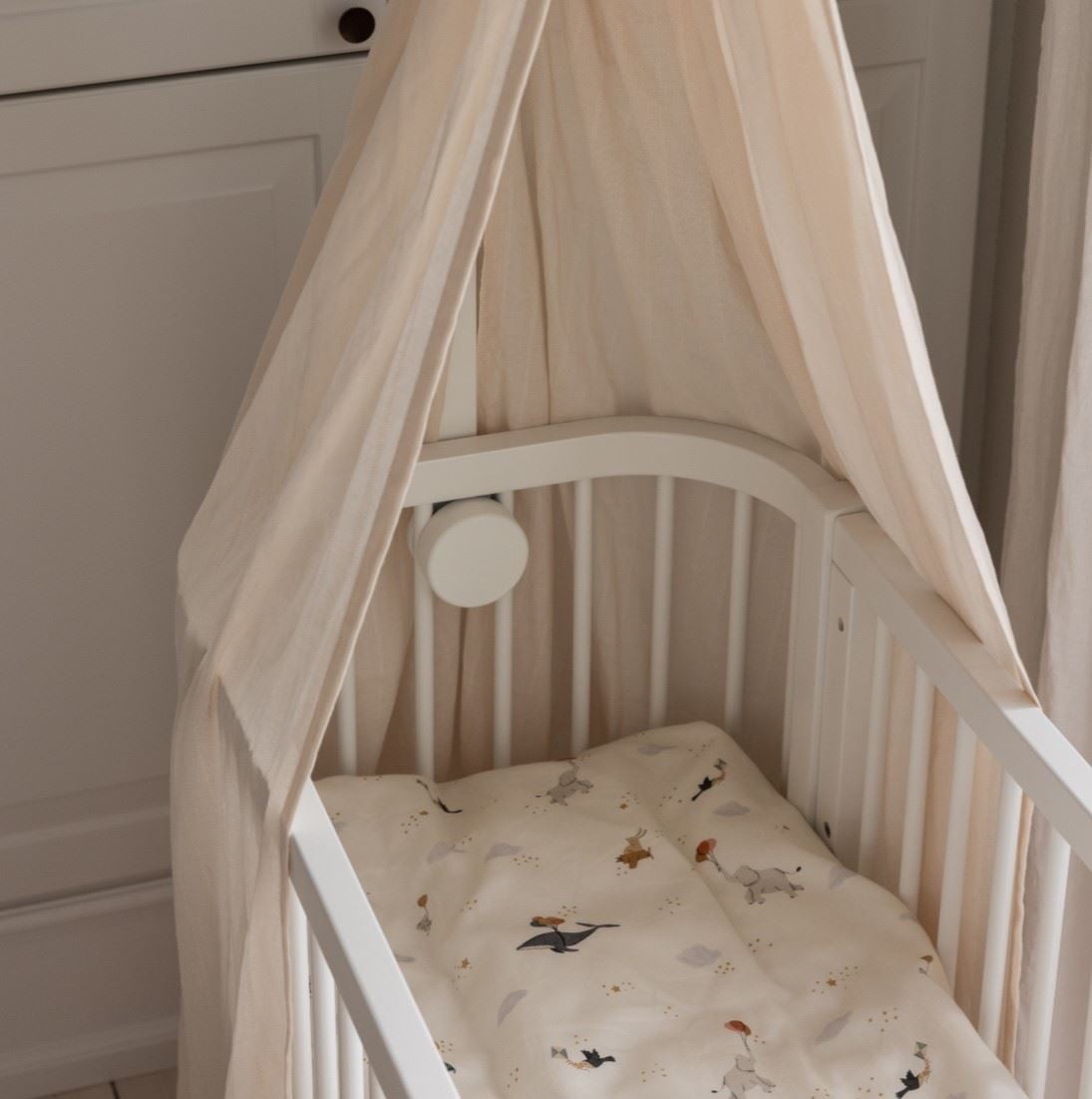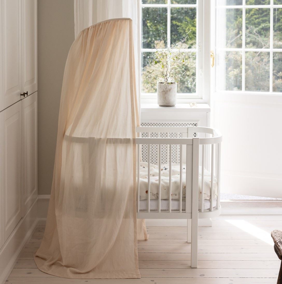 Sebra Bedside Crib Natur er en gjennomtenkt babyseng for foreldre som ønsker trygg nærhet til den nyfødte uten å dele seng. Den senkbare siden gir enkel tilgang til barnet gjennom natten, slik at du kan trøste, amme eller finne smokken uten å stå opp. Babyen ligger tett inntil deg, men i sin egen trygge barneseng – noe som gir ro, trygghet og bedre søvn for både barn og foreldre.