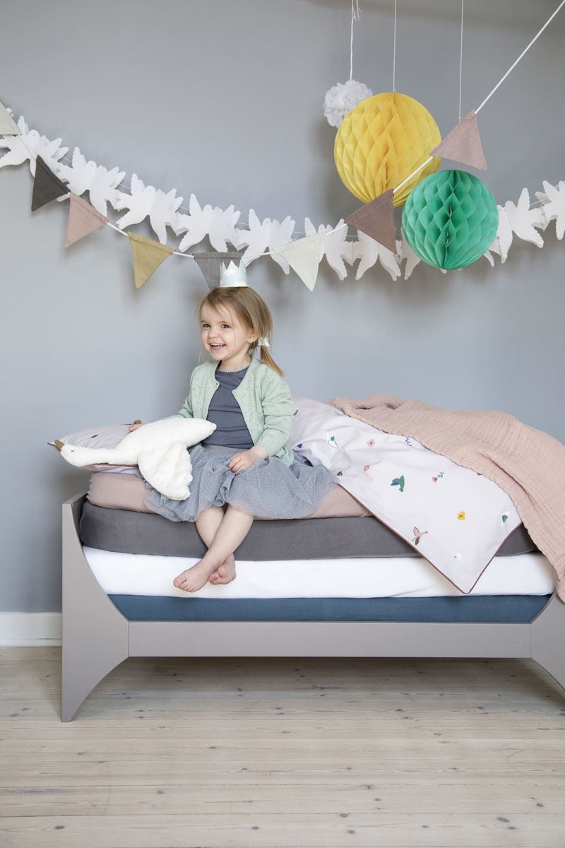 Mykt og deilig jersey laken i GOTS‑sertifisert økologisk bomull. Fasongsydd med elastikk i kantene. Passer Sebra Seng Junior og andre senger med madrassmål ca. 160×70 cm.
