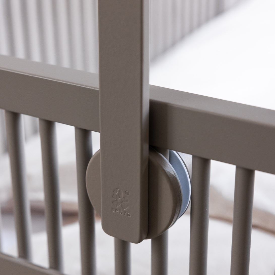 Holderen er enkel å montere på Sebra-sengen så vel som på en lekegrind eller andre lamellmøbler. To polstrede klemskiver beskytter overflaten og strammes sikkert med en vrimekanisme. Enten du holder en babymobil eller en kalesje, holder holderen seg stabil og sikker.
