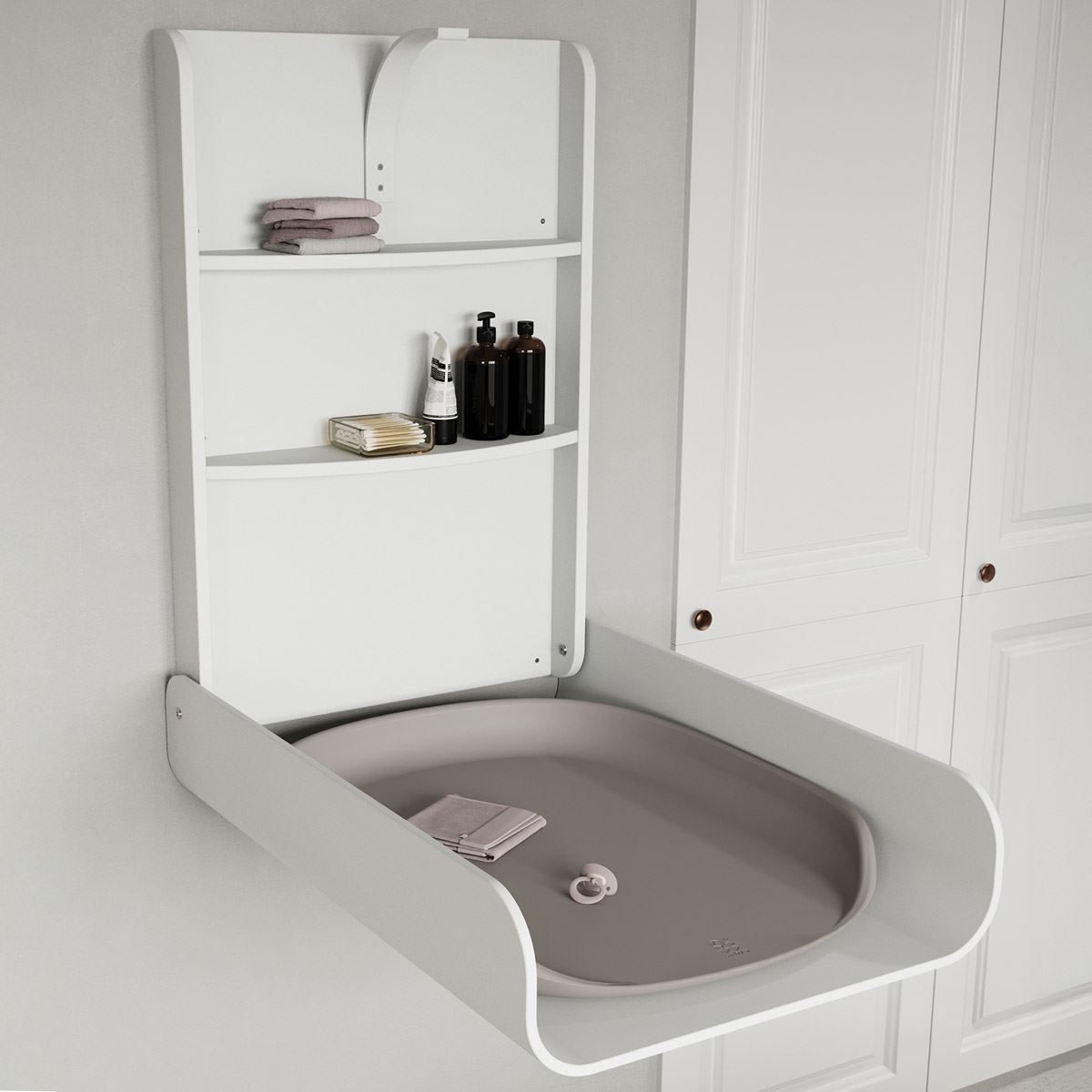 Oppdag Sebra Vegghengt Stellebord - en smart og plassbesparende løsning som gjør små rom til funksjonelle stellerom. Stellebordet foldes enkelt ned med én hånd, og den solide låsemekanismen i formbøyd tre holder det trygt på plass. To integrerte hyller gir plass til bleier, klær og utstyr, mens de høye, avrundede kantene sørger for en trygg stelleopplevelse. Designet i Danmark og laget av sertifisert treverk, gir dette stellebordet både sikkerhet og stil til hjemmet.