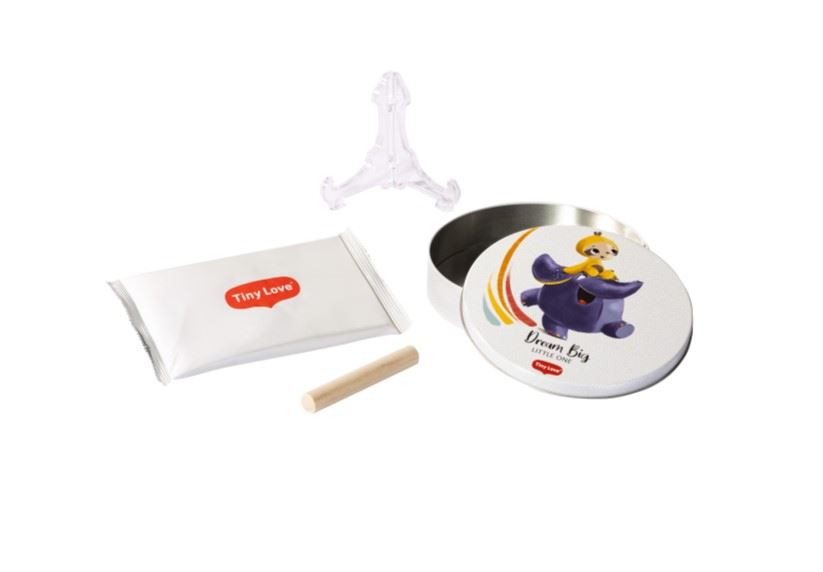 Bevar minnene fra babyens første tid med Tiny Love Magic Box. Lag gipsavstøp av hånd eller fot i trygg, giftfri og dermatologisk testet leire - i en elegant metallboks: et varig minne eller gave.