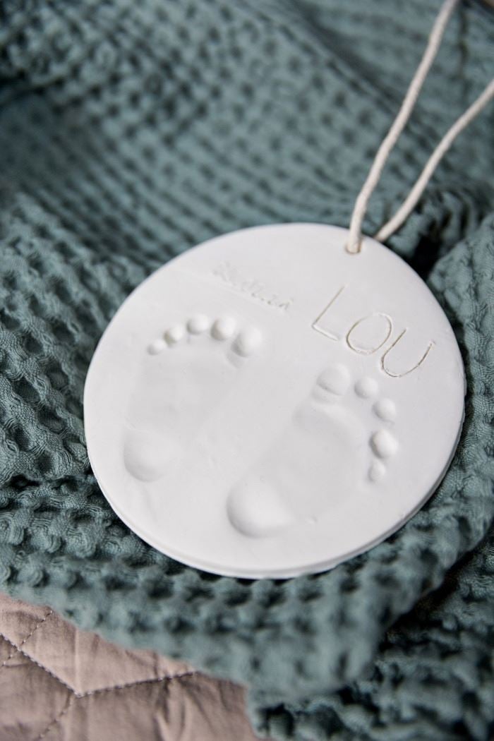 Dette sjarmerende minnet har en bambusring og myk leire som lar deg lage et avtrykk av din lilles hender eller føtter. Settet inneholder alt du trenger for å skape disse dyrebare inntrykkene og, når den er tørr, finne det perfekte stedet å henge dem opp i hjemmet ditt. Feir magien fra de første månedene og lag et vakkert minne som vil varme hjertet ditt i årene som kommer.