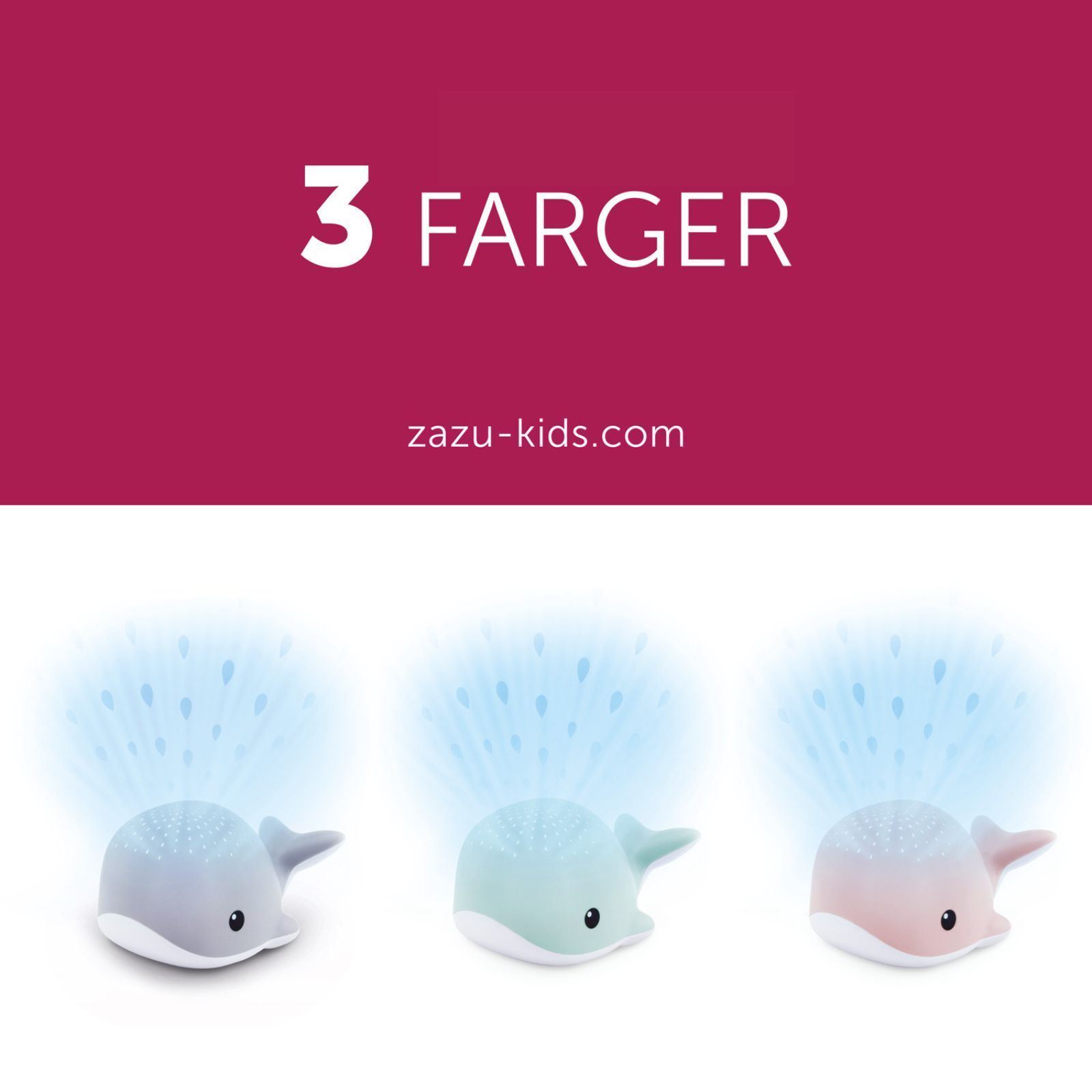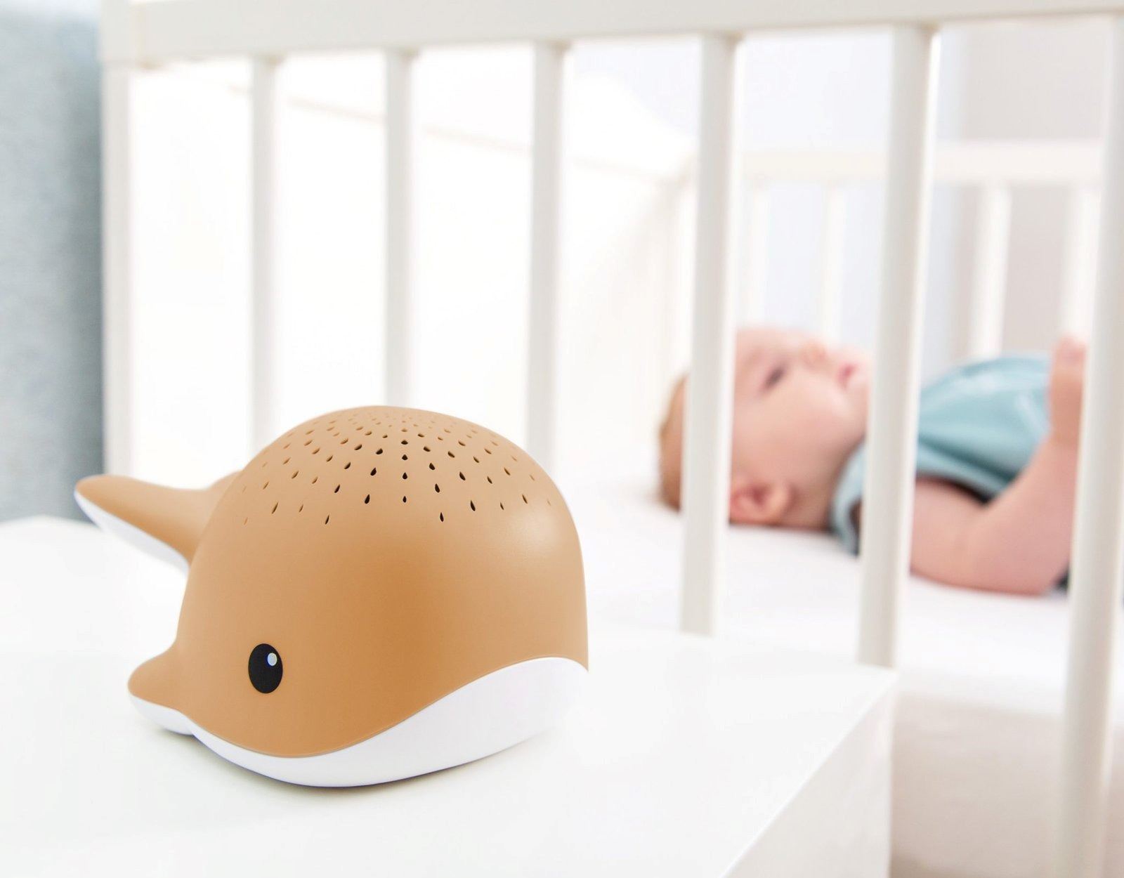 ZAZU Hvalen Wally forvandler barnerommet til en rolig undervannsverden ved å projisere bevegende vanndråper i fire fargemoduser – rød, blå, grønn eller flerfarget – på tak og vegger. Samtidig kan du velge mellom tre beroligende lyder: hjerteslag, havlyd eller rolig lounge-musikk, som hjelper barnet å slappe av og sovne lettere. Wally kan enkelt festes til sprinkelsengen med den medfølgende borrelåsremmen, perfekt når det ikke er nattbord i nærheten.