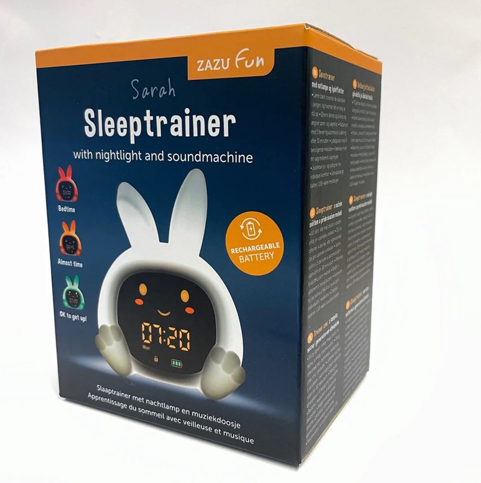 ZAZU Sarah er en sjarmerende og pedagogisk søvntrener som lærer barn forskjellen mellom natt og dag. Ved hjelp av fargeskiftende lys og åpne/lukkede øyne viser Sarah tydelig når det er tid for å sove og når det er greit å våkne.